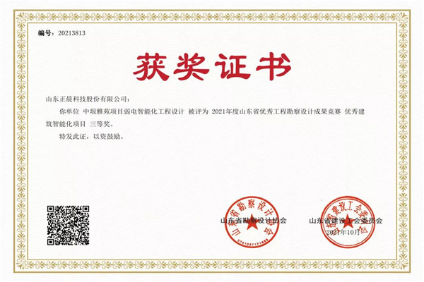 近日,山东省勘察设计协会、山东省建设工会公布的《2021年度山东省优秀工程勘察设计成果竞赛结果的通知》中,万象城网页版股份设计的中垠雅苑弱电智能化项目获评优秀建筑智能化项目三等奖,有力的助推了城市勘察设计水平的提升及城市建筑品质的优化。