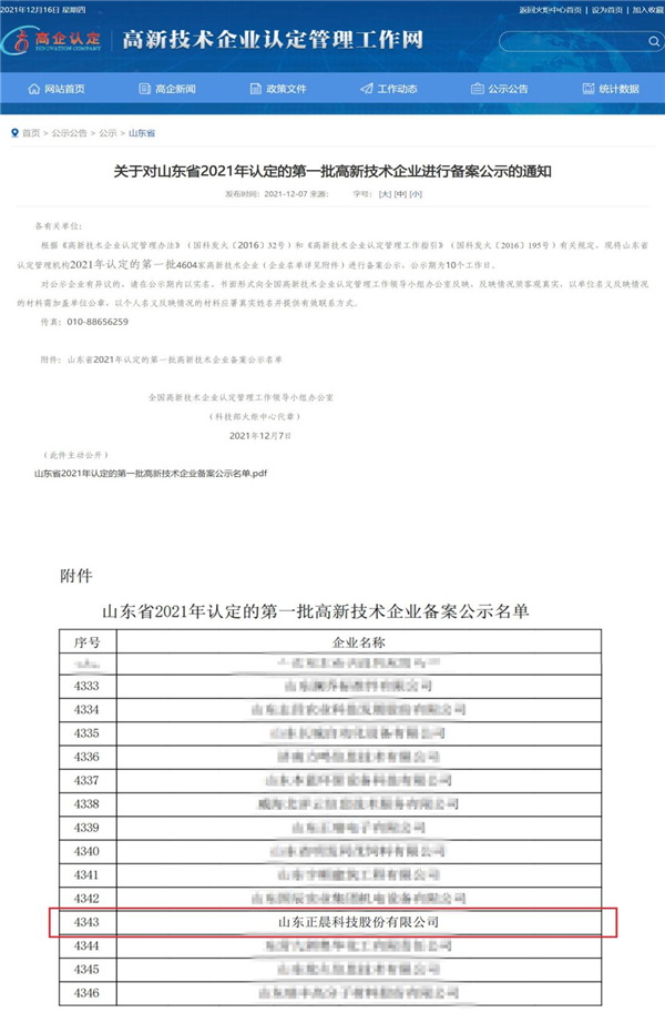 高新技术企业认定传来捷报!近日,全国高新技术企业认定管理工作领导小组办公室公布了山东省2021年第一批高新技术企业名单。万象城网页版榜上有名。